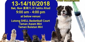There will be another round of free rabies vaccination for dogs which will be held this weekend (Oct 13 and 14) at three locations in Miri. Piasau State Assemblyman, Datuk Sebastian Ting said the mass vaccination campaign starts from 9am to 4pm will be held at Lutong Shell basketball court, Taman Awam Miri Bumiko, and Taman Bulatan Miri in Piasau Jaya. The vaccination exercise, he added, is for dogs but those with other pets can bring them to the Miri Veterinary Services Department clinic at Pelita Commercial Centre. The clinicRead More