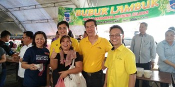 古晋南市市政局于10日下午在实都东停车场派发杂锦粥予民众。 在场者包括古晋南市副市长希尔米、首长署政治秘书陈开、巴达旺市议员叶耀星和人联青宣教秘书符祥威律师。 众人在场派发杂锦粥予民众,并提前祝贺马来同胞开斋节快乐。