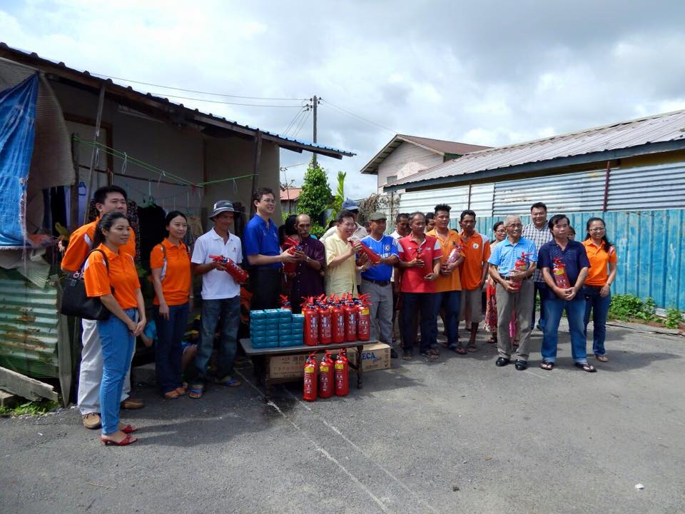 SUPP President, Senator Datuk Dr. Sim Kui Hian and Youth Chairman, Tan Kai distributed 30 units of fire extinguishers and fire alarms at Kg Tabuan Foochow Dayak this morning. Dr. Sim hoped that the equipments will help the wooden house owners to detect and contain in the case of any fire outbreak at the initial stage. He said this is important as most of the houses in the kampung are wooden.