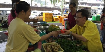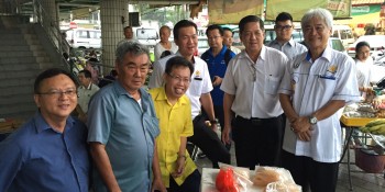 SUPP President, Senator Datuk Dr. Sim Kui Hian distributed mandarin oranges at the 3rd Miles Market in Kuching yesterday. Sim said due to the Chinese New Year celebration, SUPP leaders took the opportunity to spread festive joy as well as interacting with the local community.