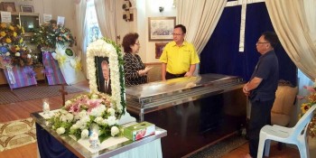 砂人联党巴都吉当区州议员兼巴达旺市议会主席罗克强于日前前往瞻仰已故前任加帛区国会议员拿督詹姆斯金本的遗容。已故詹姆斯金本是在本月18日凌晨5时40分左右,在沙登医院逝世,享年77岁。他生前面对心脏问题。 他曾经于1986年至1999年,在砂土保党旗帜下成为加帛3届国会议员。 罗克强形容,詹姆斯金本是一名杰出的伊班领袖。 他也向詹姆斯金本的遗孀拿汀瑟诺丽达和4名孩子献上哀悼。