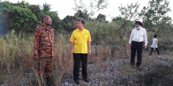 Dato Sebastian Ting helped alert the Fire brigade at 6pm in Pujut 2B Regency Park yesterday. Residents noticed some fire had started in the bushes and informed Cr. Karambir who called Ting. The fire brigade team rushed to the scene to put out the fire. According to the Team Leader Narain Singh this was the 5th fire yesterday Ting requested everyone to be careful as the the weather is hot and dry and some areas are prone to bush fires.