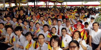 President of SUPP, Datuk Dr. Sim Kui Hian, shared a moment of joy during the celebration of the Sarawak Independence Day at the staduim with school children who turned up to show their patriotism.