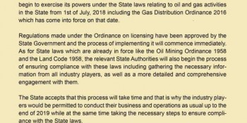 As announced by Chief Minister on 6th March 2018 the State Government will begin to exercise its powers under the State laws relating to oil and gas activities in the State from 1st of July, 2018 including the Gas Distribution Ordinance 2016 which has come into force on that date.