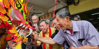 Deputy Premier, Datuk Amar Dr Sim Kui Hian performing the dragon eye- dotting ceremony