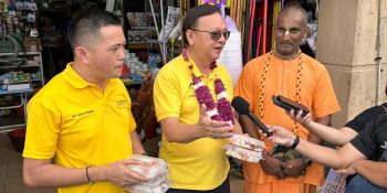 A total of 500 packets of vegetarian food was distributed to public organised by International Society for Krishna Consciousness (Iskcon) Kuching. Batu Kitang State Assemblyman, Dato IR Lo Khere Chiang who helped in distributing the vegetarian nasi lemak to the hawkers and patrons at Mile 3 Wet Market yesterday expressed his thanks to Iskcon Kuching who was able to prepare 500 packs of food despite their small community. He said he had been joining them for years in presenting these foods to markets or meet the people and it isRead More