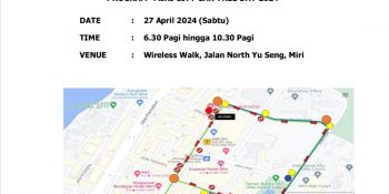 In connection with Miri City Car-Free Day, road of Jalan North Yu Seng and Jalan Merpati, half road of Jalan Persekutuan, JalanKipas, Jalan Sylvia and Jalan Parry will be temporarily closed to vehicular traffic on Saturday, 27th April 2024 from 5.30 a.m. to 11.00 a.m. Attached road map for information.Due to the half-day road closure, Miri City Council would like to remind the vehicle owners to plan ahead owing to the road closure and prepare for road option to reach their destinations. Apart from stationing traffic wardens, appropriate traffic diversionRead More