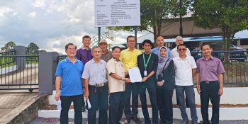 Wilfred Yap witnessing the handing over of the RTP project by MPP officer Mohd Azizul to Kapitan Lee Tho Fung