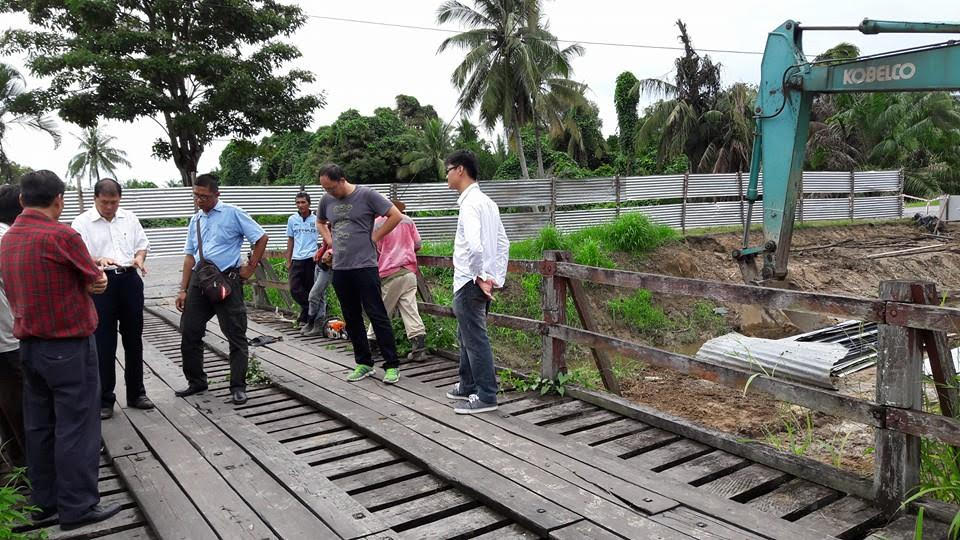 State Assemblyman for Piasau, Dato’ Sebastian Ting went down to Kampung Katong to meet up with the JKR officers, contractors, Miri council councillors and local residents to follow up the progress of the repair of the bridge.