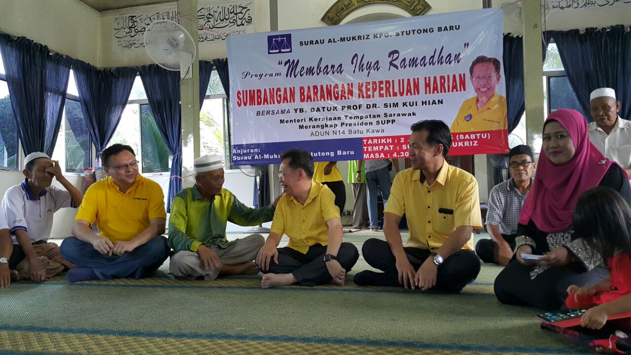 砂人联党主席拿督沈桂贤于日前在甘榜实都东巴鲁主持开斋节布施活动。