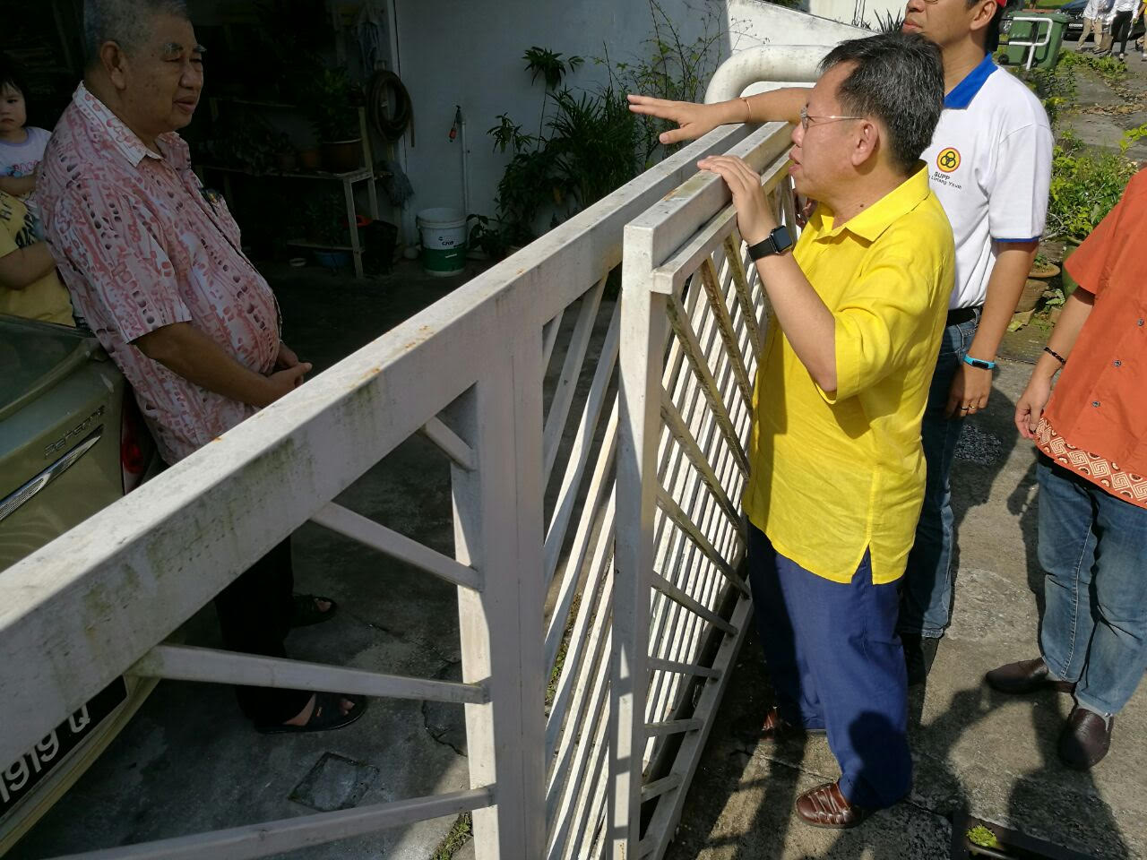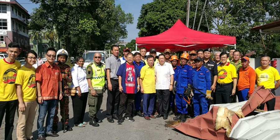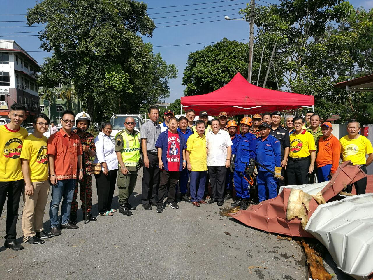 Dr. Sim went to Lorong Permata 1, Jalan Rock to see the situation for himself and said the most important thing is to clear up the debris and gave a temporary roof for the five houses whose roofs were blown off.