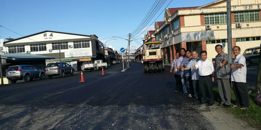 Senator Datuk Dr. Sim Kui Hian went to Batu Kawa old Township to see that the roads there are being resurfaced.