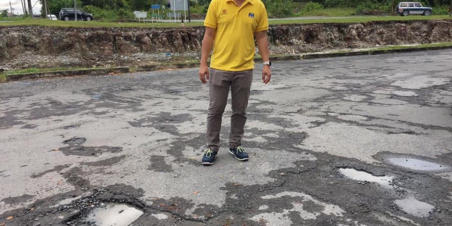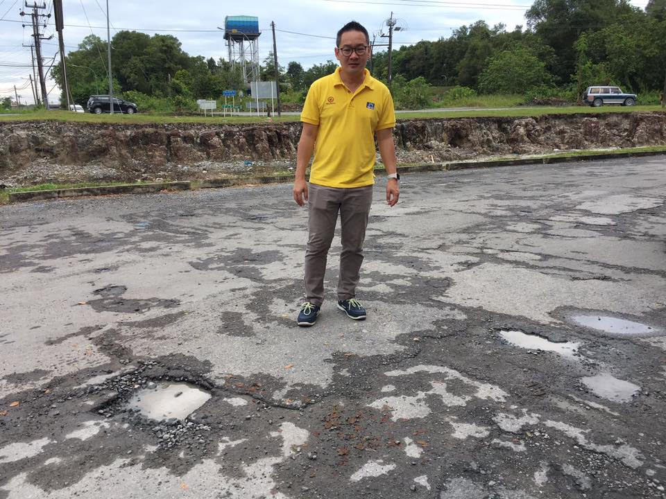 Political secretary to the chief Minister, Michael Tiang went to went to Jln. Indah to inspect the infamous “Moon surface roads” at the commercial complex there.