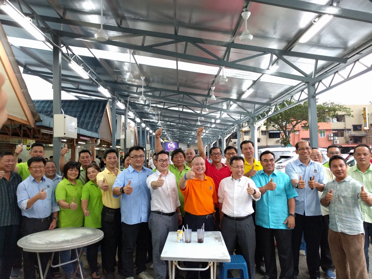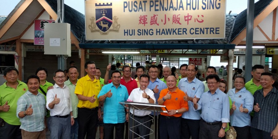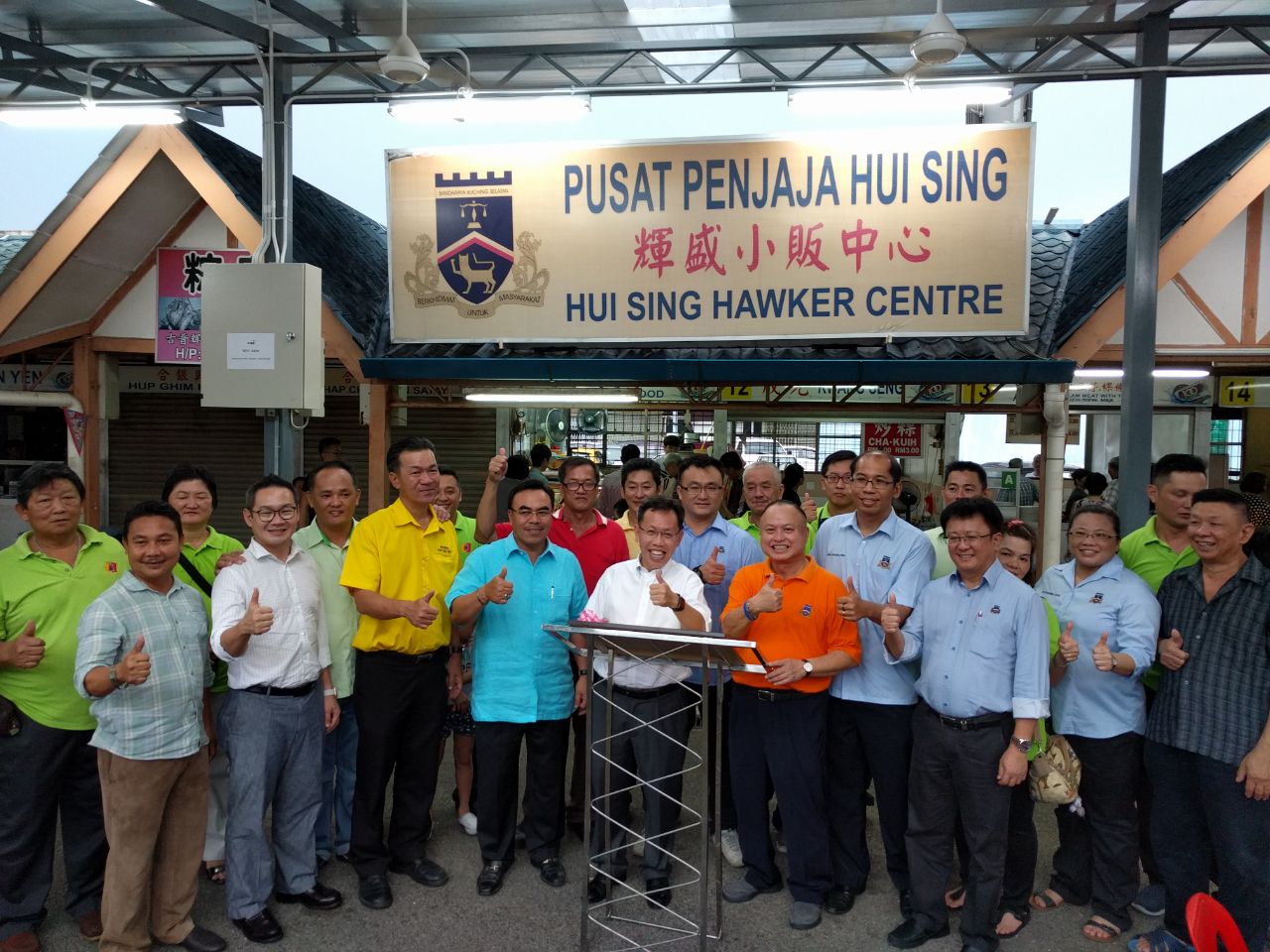 砂地方政府部部长拿督沈桂贤于昨日傍晚为耗资18万9740万令吉的辉盛小贩中心雨盖设施主持开幕,在场者包括南市市长拿督曾长青和副市长赫尔米奥夫曼。