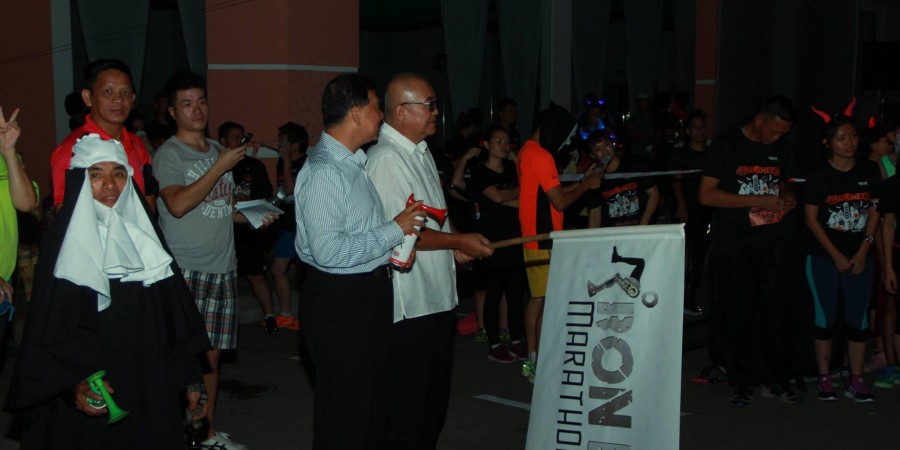 Piasau State Assemblyman, Dato’ Sebastian Ting with Mayor Adam Yii officiated the Flag off Halloween Night Run on Saturday night, an event organised by Ironleg Marathon Club at the Miri city resort.