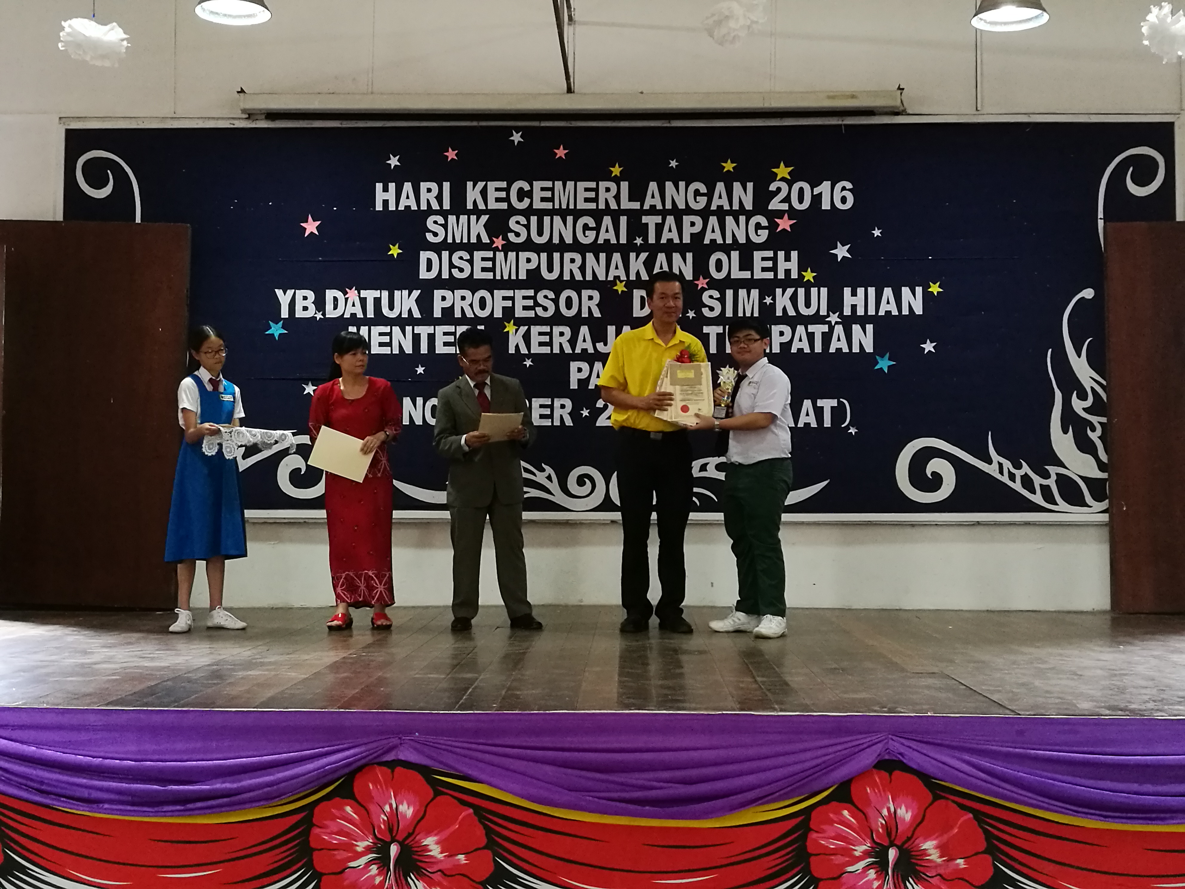 Guest of Honour, YB Datuk Prof. Sim Kui Hian, Sarawak Minister of Local Government was represented by MPP Councillor Wilfred Yap to “Majlis Anugerah Kecermelangan 2016” of SMK Sungai Tapang.