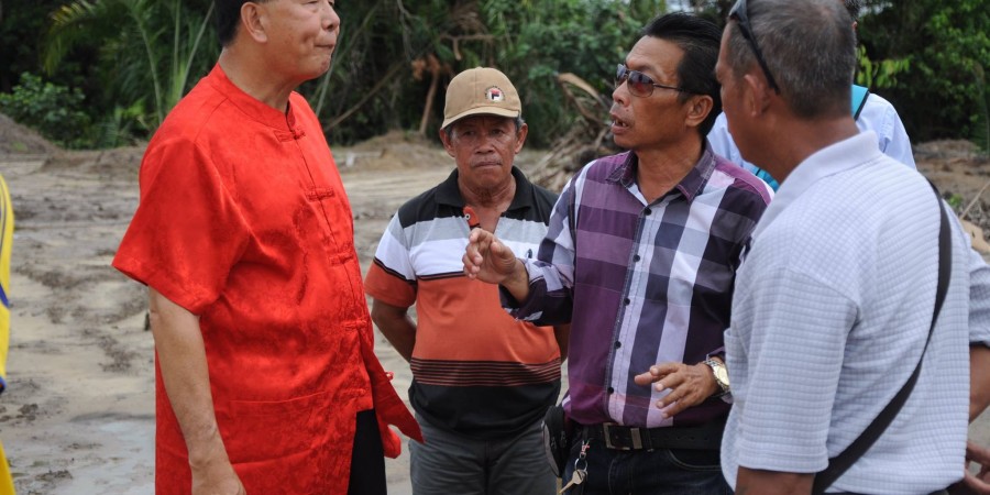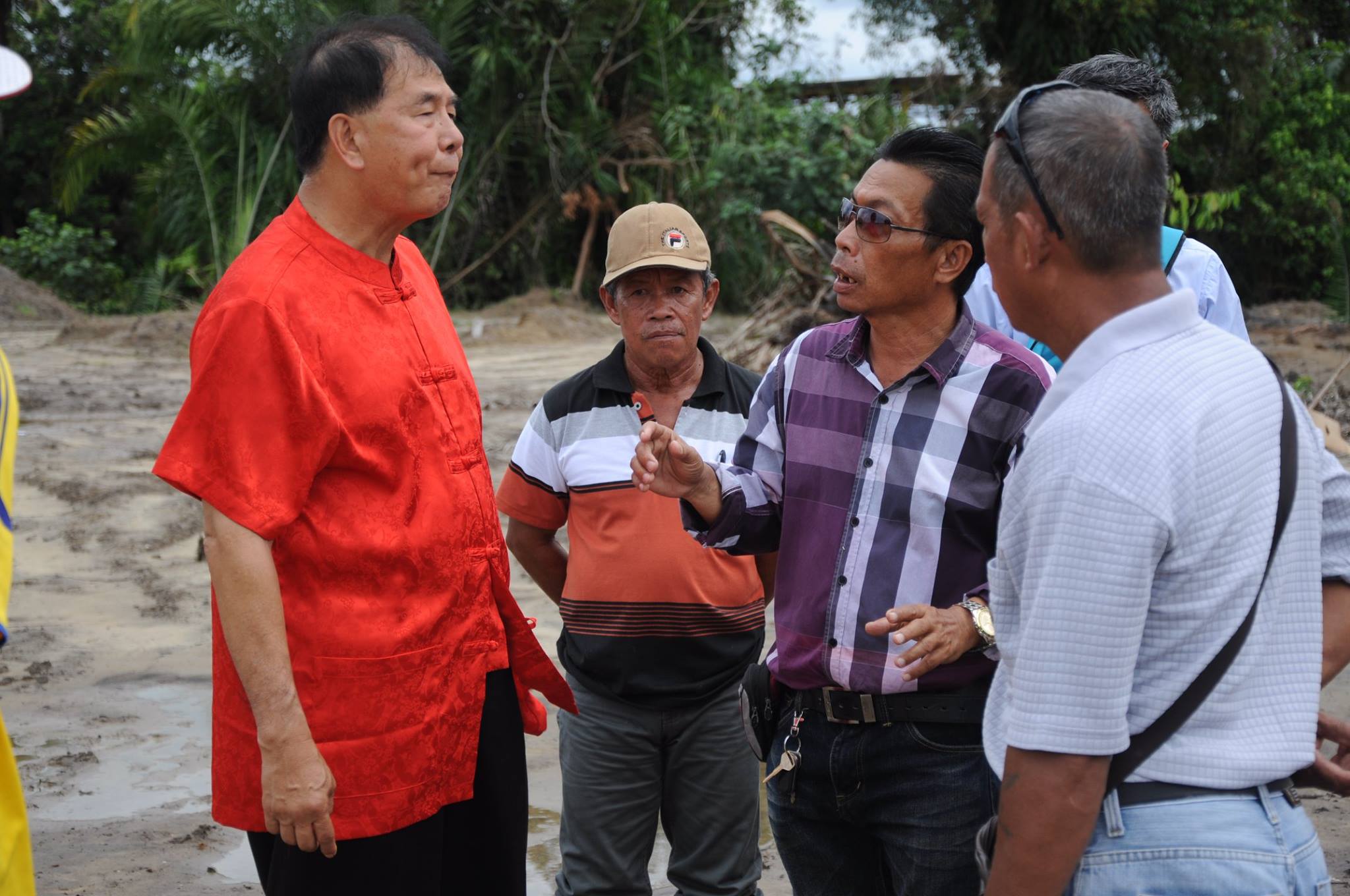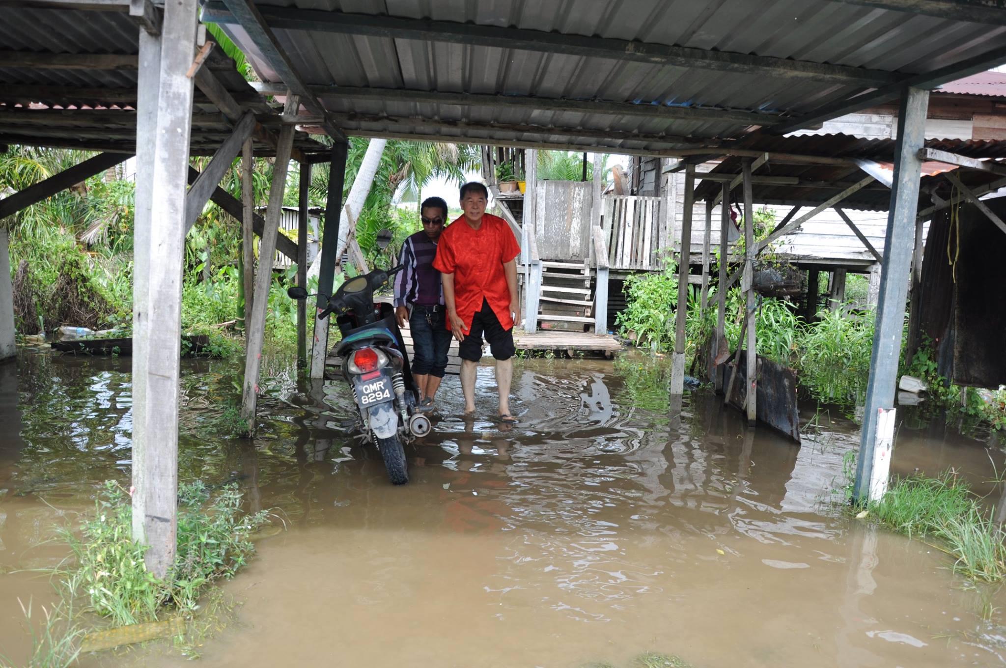 Dato Sebastian went down to Kpg Merikan for a site inspection on the flooding problem in the area. After yesterday’s heavy rain, kpg Merikan was flooded with water due to a lack of water way to discharge the water.