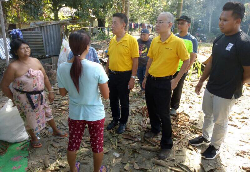 Meradong assemblyman Datuk Ding Kuong Hiing and political secretary to chief minister Teng Ung Woo were also present to hand over the contributions to Rumah Saba chieftain Aling Sing.