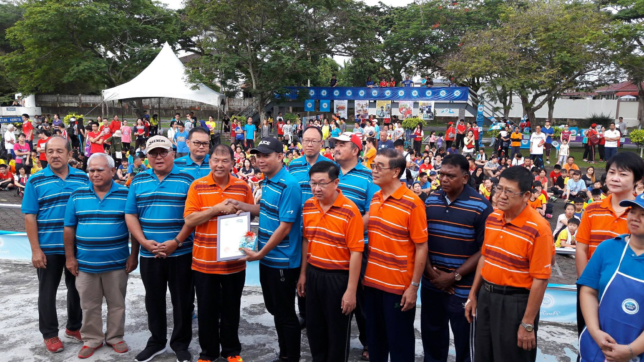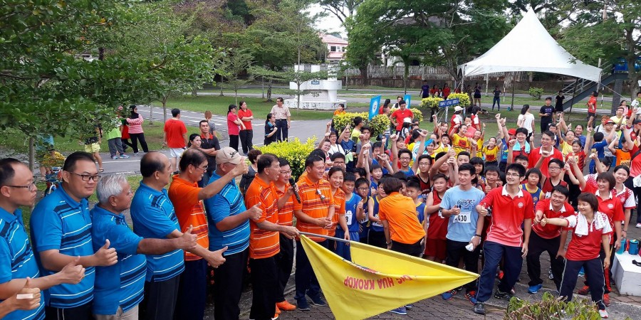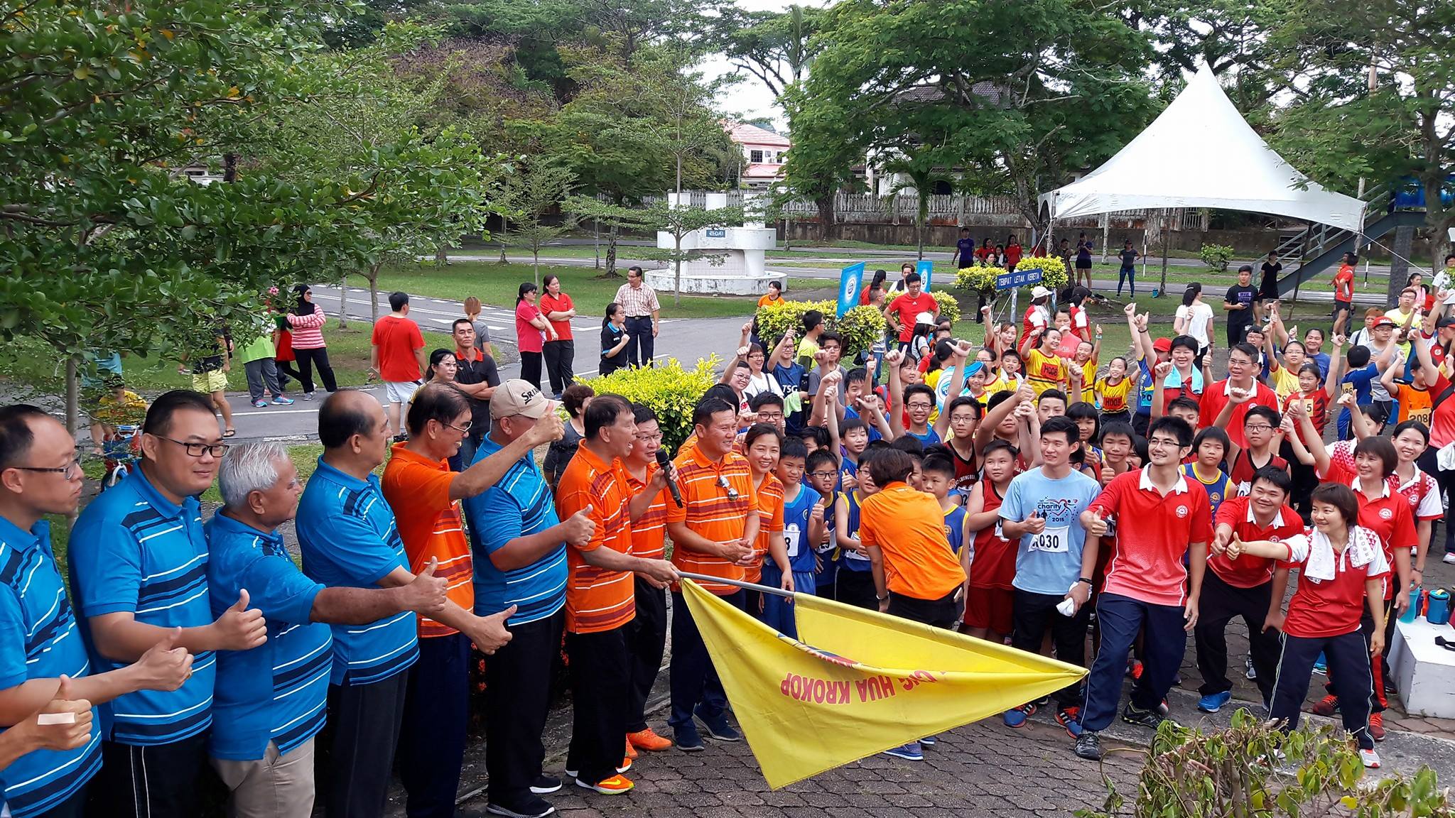砂人联党卑尔骚区州议员拿督陈超耀律师于昨日参与美里珠巴中华公学的跑步活动。