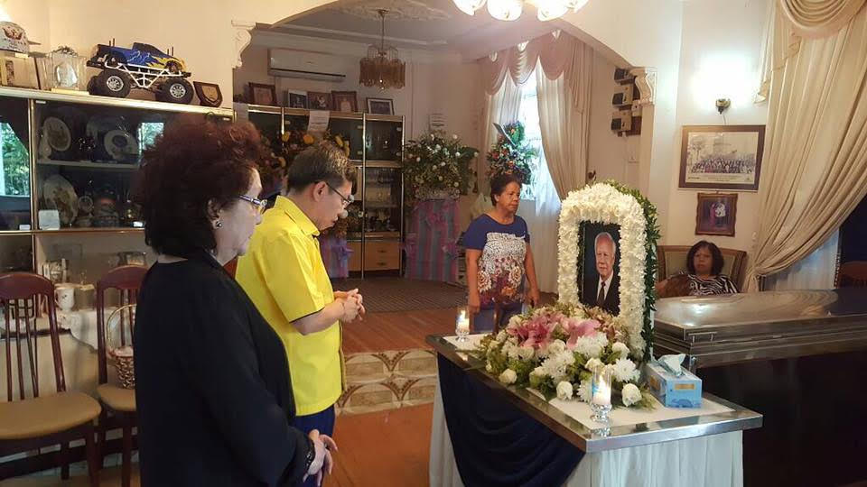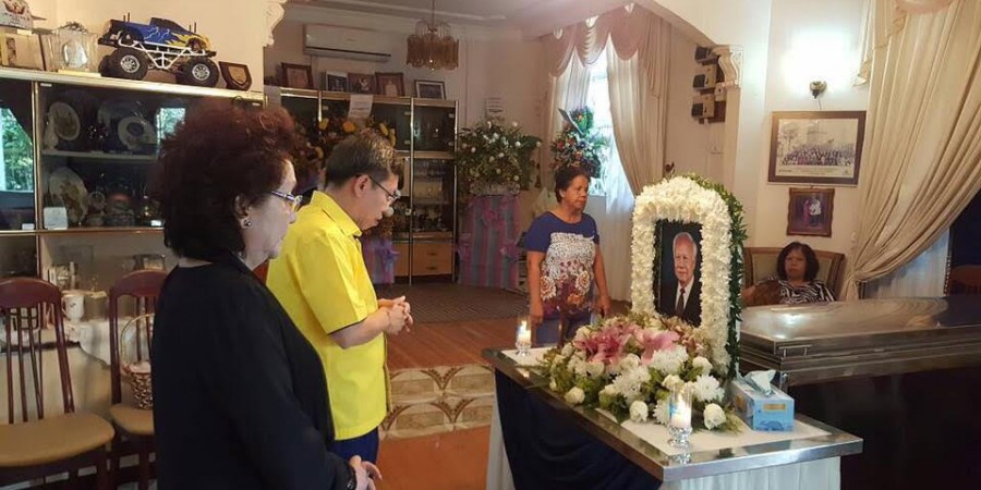 砂人联党主席兼地方政府部长拿督沈桂贤于今日瞻仰已故前任加帛区国会议员拿督詹姆斯金本的遗容。