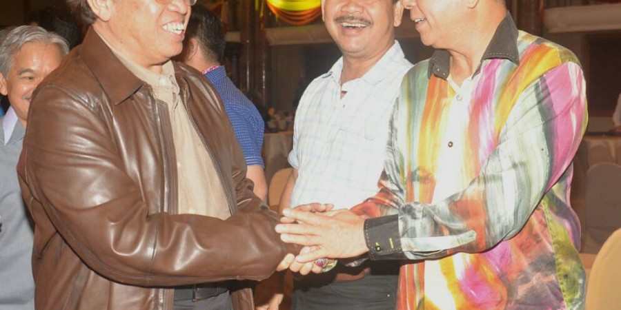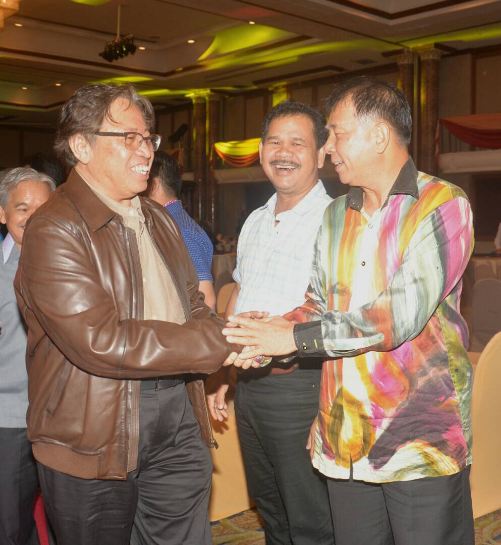 Piasau state assemblyman, Dato Sebastian Ting, greeting the Chief Minister, Datuk Amar Abang Johari, at the BNBBC dinner at a local hotel recently after the adjournment of the stste legislative meeting .
