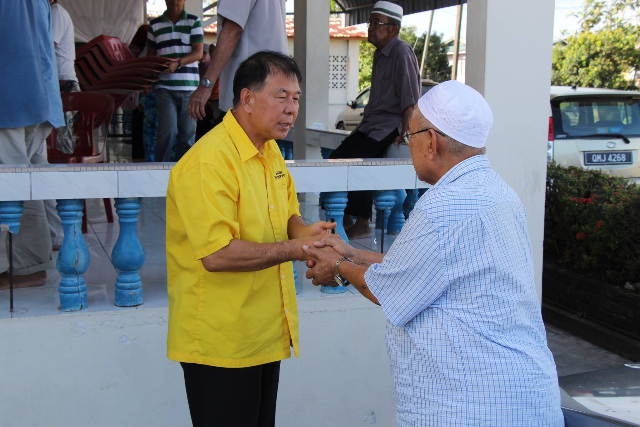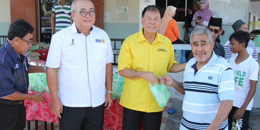 砂人联党中央秘书长兼卑尔骚区州议员拿督陈超耀律师于日前在美里甘榜双溪沙东派发辣粥给予当地马来同胞。