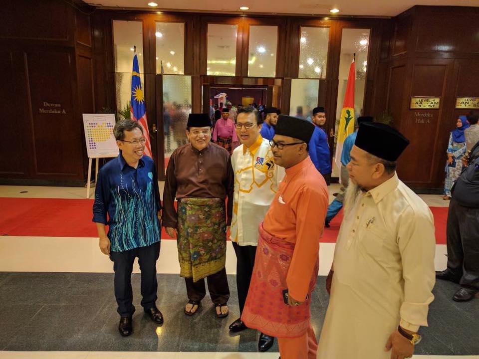 在场包括首相夫人拿汀斯里罗斯玛、副首相拿督斯里阿末扎希、马华总会长拿督斯里廖中莱、砂人联党主席拿督沈桂贤医生、民进党主席拿督斯里张庆信等等。