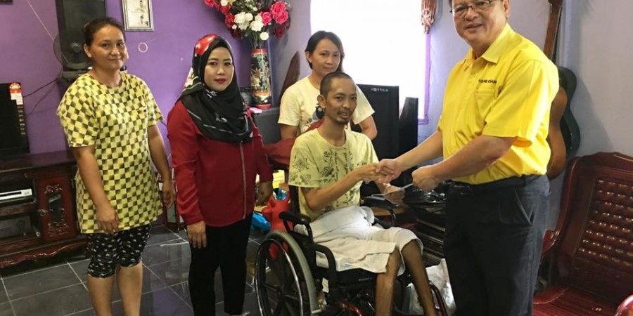 砂人联党巴都吉当区州议员兼巴达旺市议会主席罗克强于日前拜访实都东巴鲁5家不幸一群的住户,向他们伸出援手。