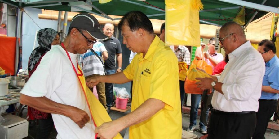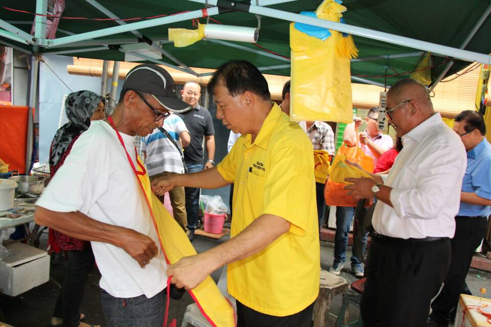 他们在场派发围巾给予小贩,提倡卫生意识。