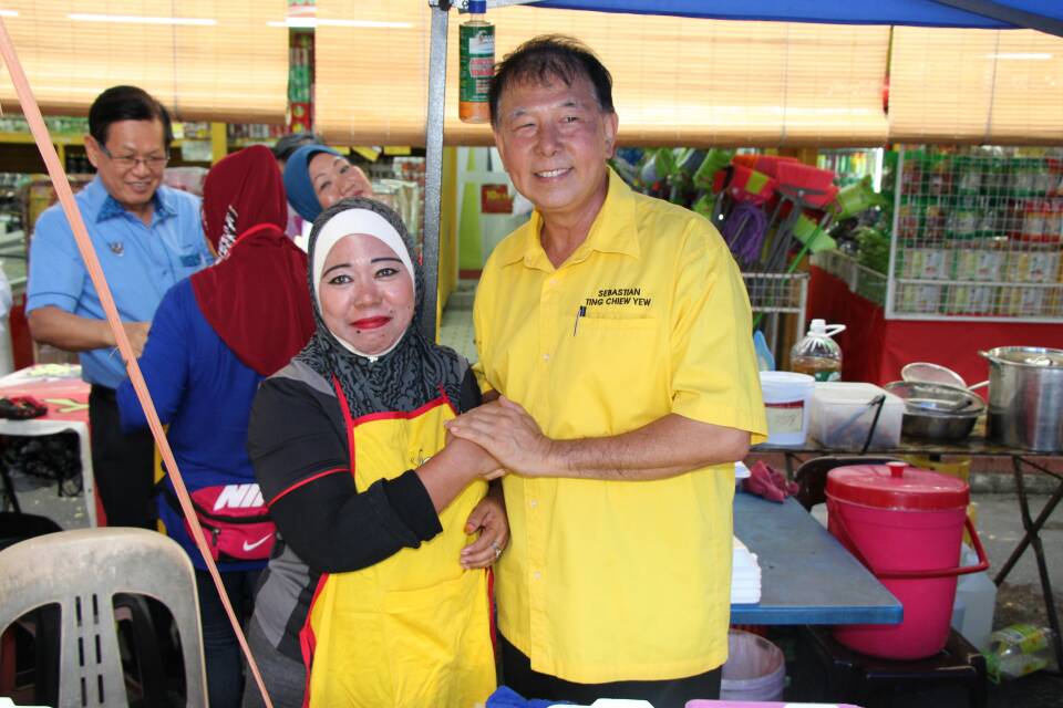 砂人联党卑尔骚区州议员拿督陈超耀律师、史纳汀区州议员拿督李景胜及美里市长俞小珊于日前拜访美里Mosjaya的斋戒月市集。