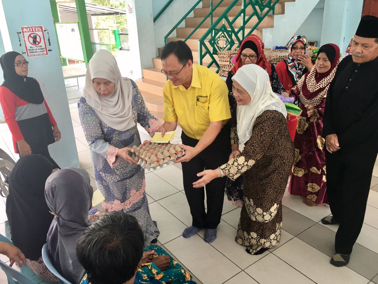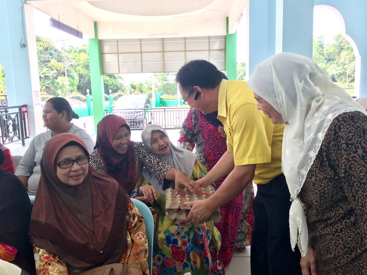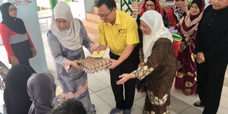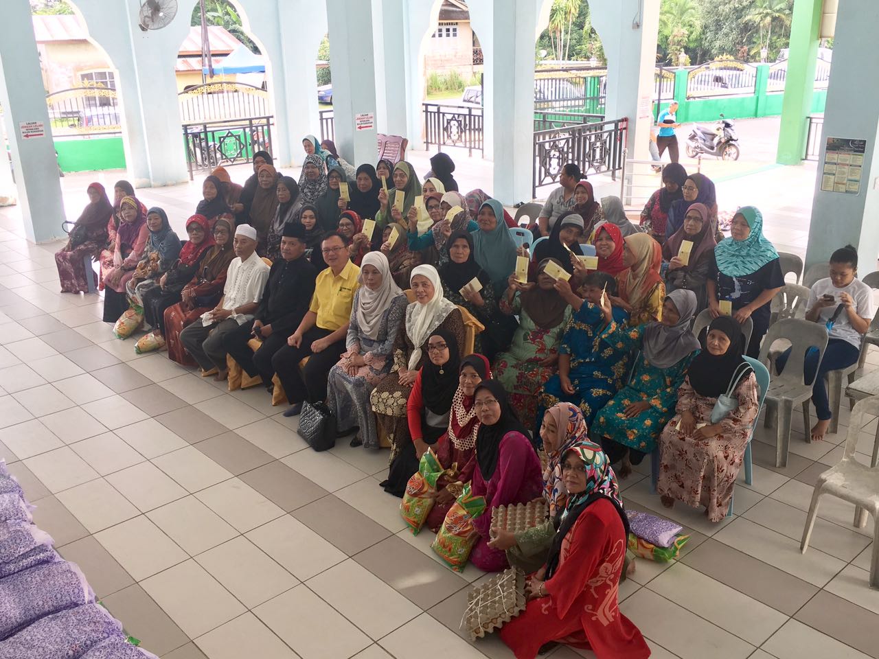 砂人联党巴都吉当区州议员罗克强与丹绒拿督区州议员拿督阿玛查米拉于日前在甘榜哈芝巴基清真寺颁发援助品予当地53名单亲妈妈,让她们可以度过来临的开斋节。