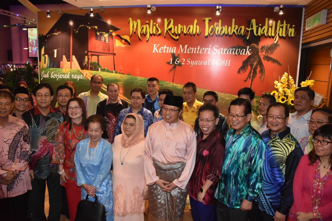 在党主席拿督沈桂贤率领下,人联党领袖与党员于开斋节首天上午前往州元首敦丕显斯里泰益玛目贺节,之后到古晋婆罗洲国际会展中心,向砂首长拿督阿邦佐哈里贺节。