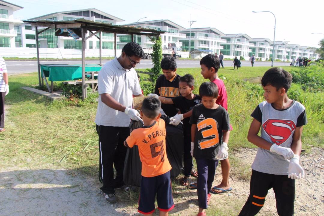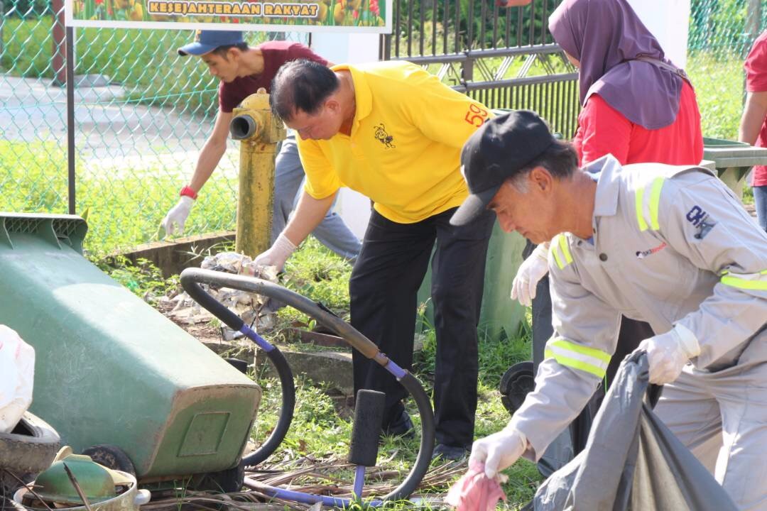砂人联党卑尔骚区州议员拿督陈超耀律师于日前参与美里甘榜史纳汀再也的清洁运动。