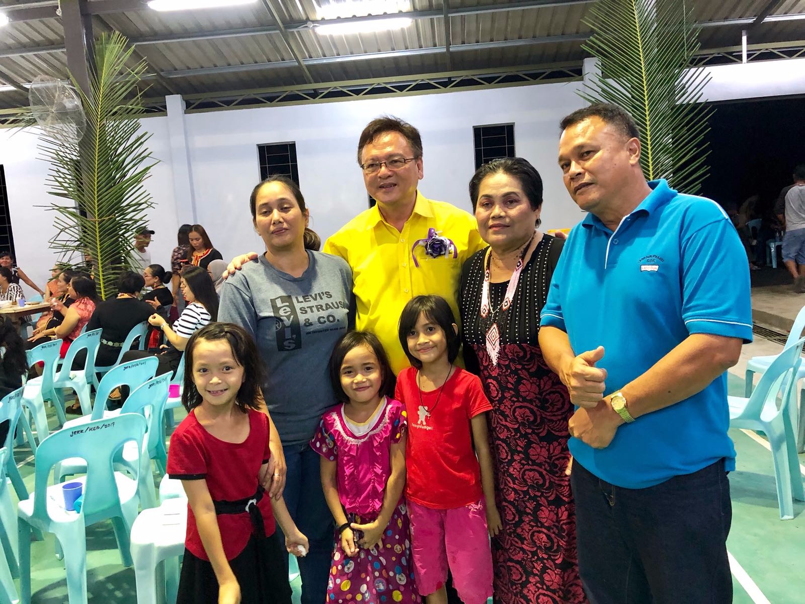 砂人联党峇都吉当区州议员罗克强与甘榜柏东(Kampung Betung) 村民提前庆祝达雅节。