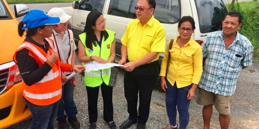 此外,他也前往兰迪路甘榜巴雅梅比,了解当地的涵洞问题。