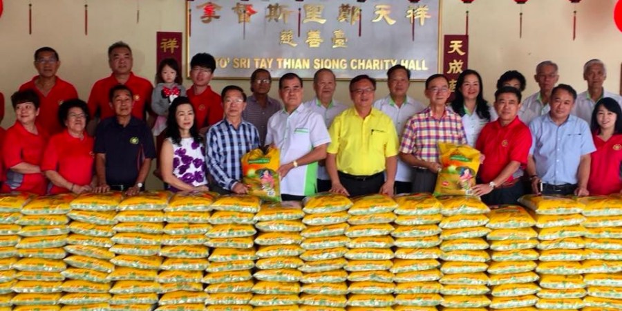 Batu Kitang State Assemblyman, Lo Khere Chiang witnessed a handover of 100 packets of 10 KG rice to Hun Nam Siang Tng recently from the Tai Poo community Association.