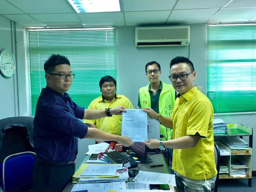 SUPP Youth Central Secretary-General Milton Foo paid a visit to Land and Survey Department today and submitted the documents of land application to the official-in-charge after hearing a request from Tchee Foh Hin.