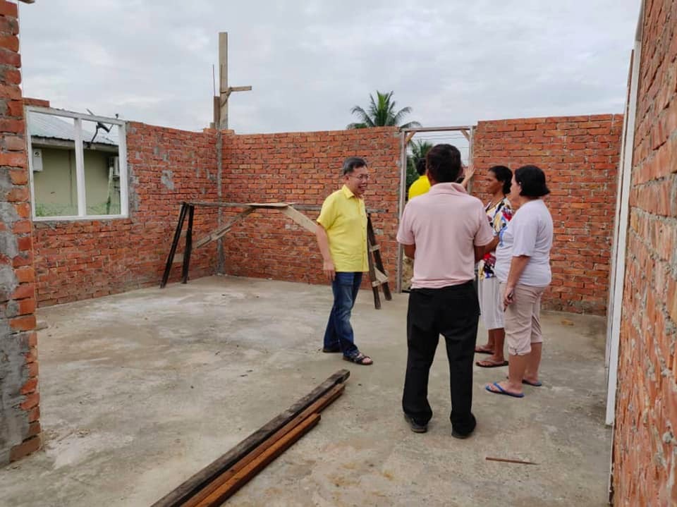砂人联党石角区议员拿督沈桂贤本月9日巡视选区内多间遭大火烧毁