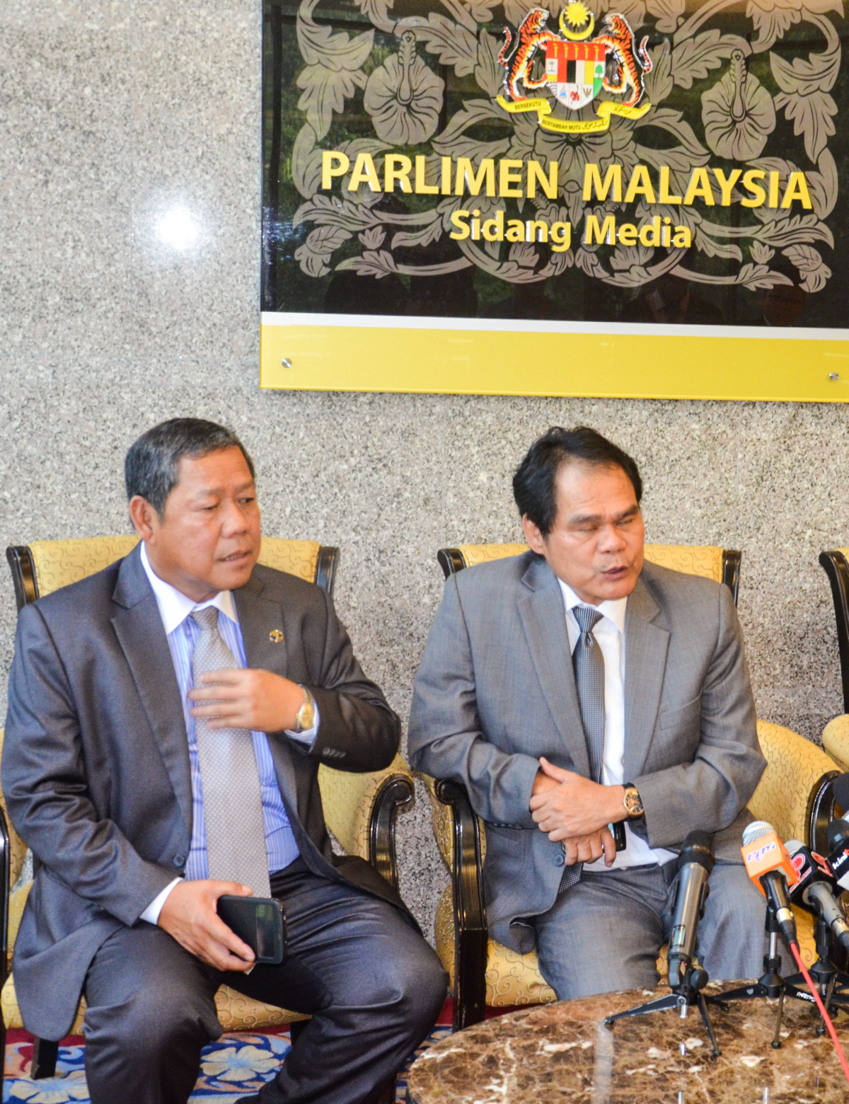 Also at the press conference today are MP for Mas Gading Anthony Nogeh Anak Gumbek and Information Chief Jacky Chan from the SPDP.