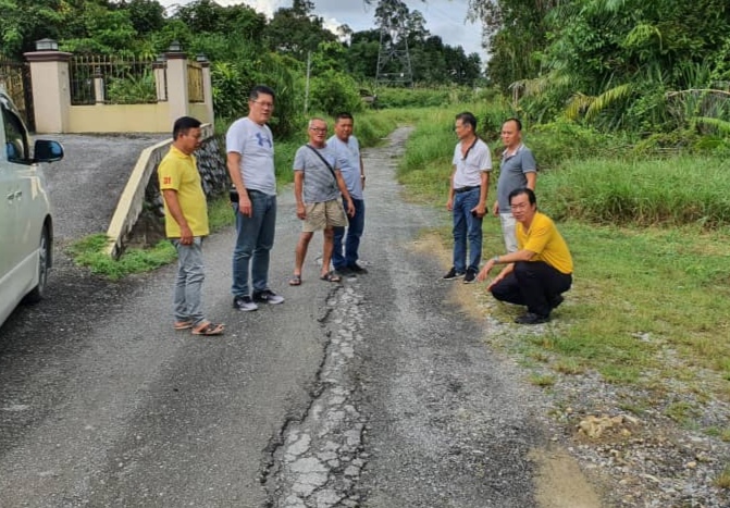 SUPP Public Complaints Bureau Chief cum Kota Sentosa Branch Chairman, Wilfred Yap have been approached by residents of Lorong 4, Jalan Sungai Tapang for his assistance to request Padawan Municipal Council to carry out urgent repairs to the dilapidated condition of a section of the road