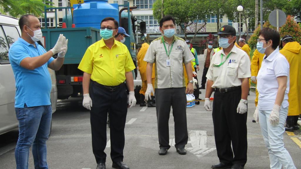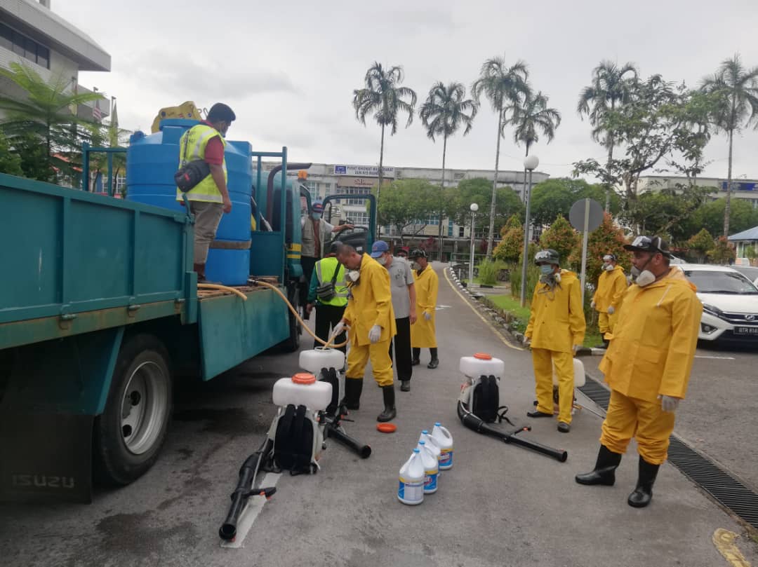 In addition, the Council has also initiated disinfecting works on its towns, starting with Kota Padawan. The disinfection covers entrances to the shophouses, five-footways, corridors, bus stops, pavement railings, other facilities and surfaces where the public usually touch with their hands.