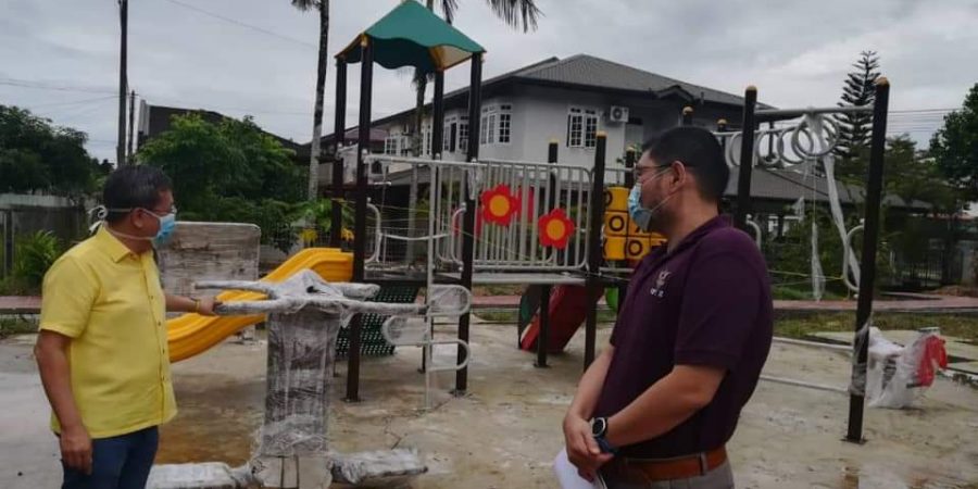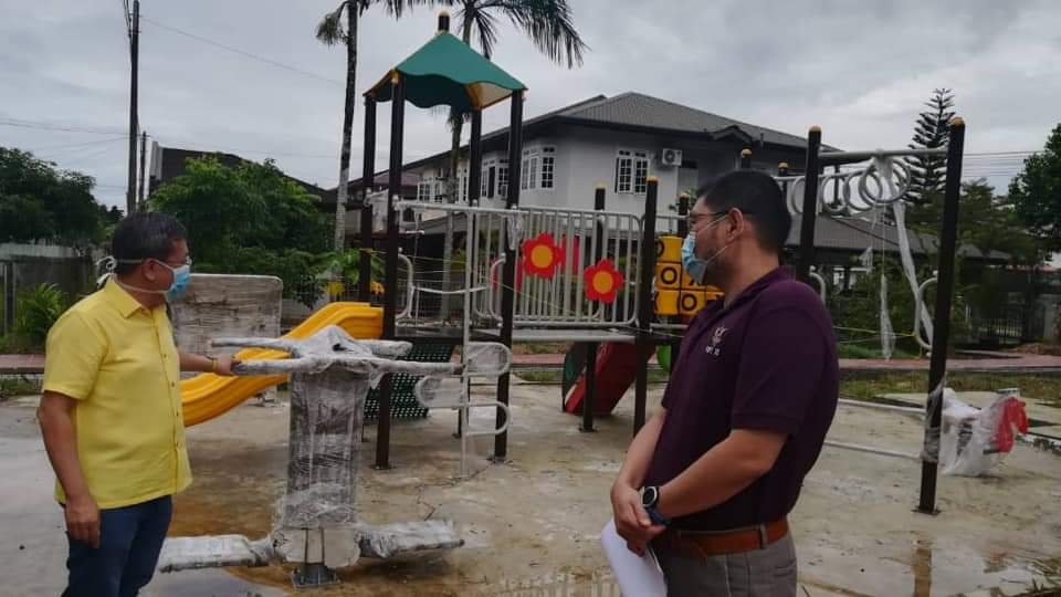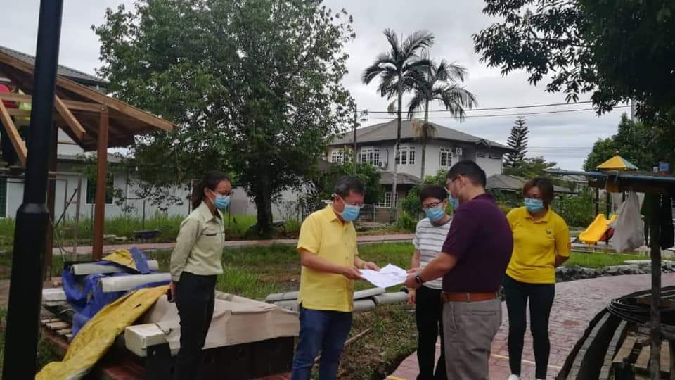 Minster of Local Government and Housing, Dato Sri Dr. Sim Kui Hian went to see the progress yesterday with Padawan Municipal council Secretary, Elizabeth Lo to seehow the RM 200,000 recreational Park facilities for children and senior citizens.