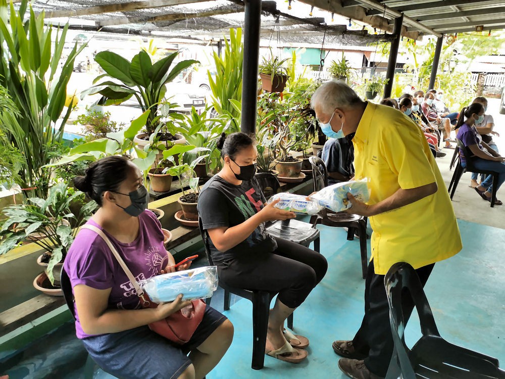 有关“安全套件”包括50个口罩、2个肥皂和1瓶洗手液,共派出56份,减轻当地居民开销。