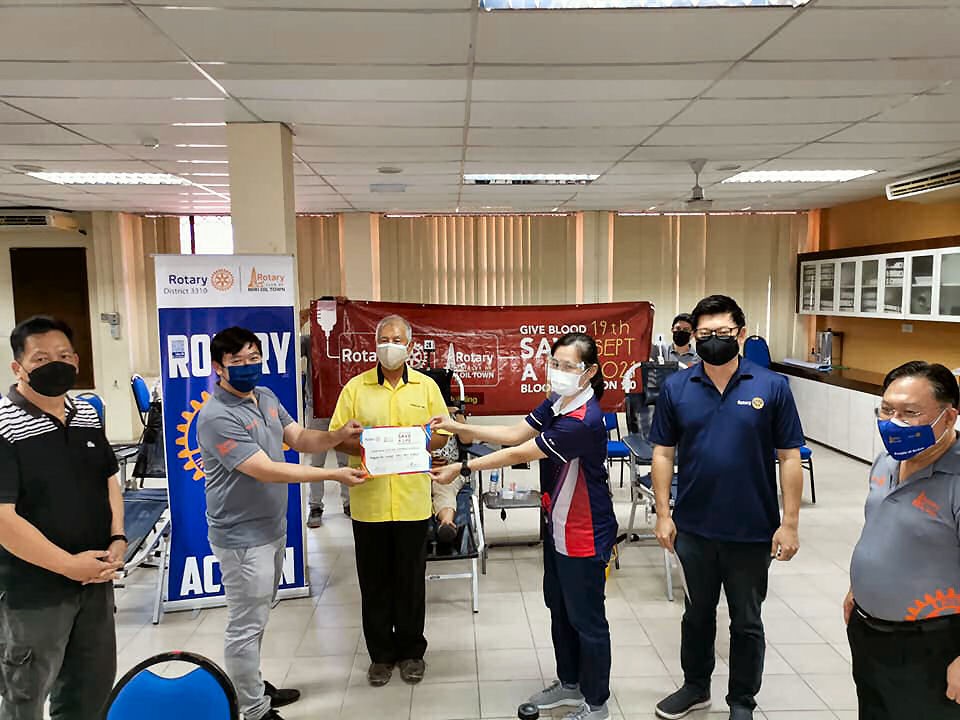 他感谢美里油城扶轮社在新冠疫情特殊时期,首次各自主办捐血活动,为医院筹募血液。尤其是捐血者,疫情下无阻他们出来捐血。