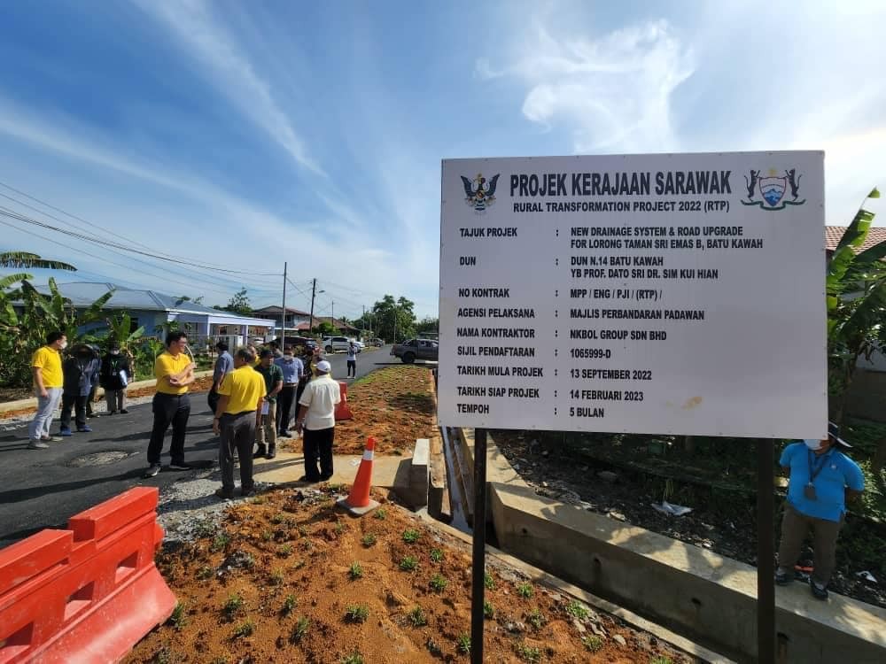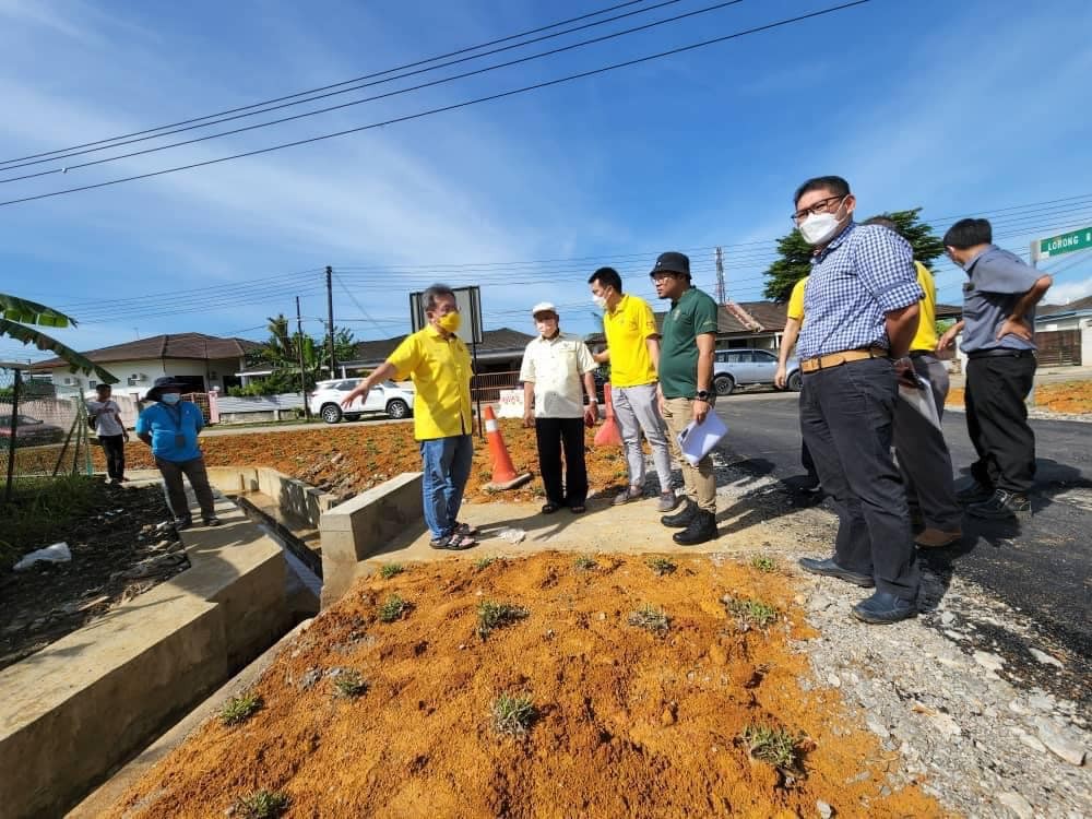 砂拉越副总理兼公共卫生、房屋及地方政府部长拿督斯里沈桂贤日前与巴达旺市议会、工程师及沈医生团队走访石角选区的Sri Emas花园及SPS 3巷。