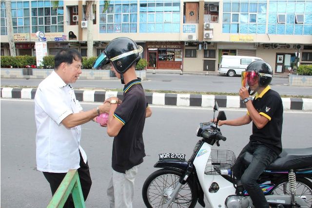He also took to the streets in Miri to give out bubur lambuk, a Ramadan specialty, to those still on the road.