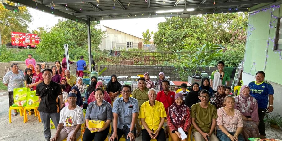 砂旅遊部副部長拿督陳超耀派发31份物资及青包予甘榜杜当德莎拉的受惠家庭。