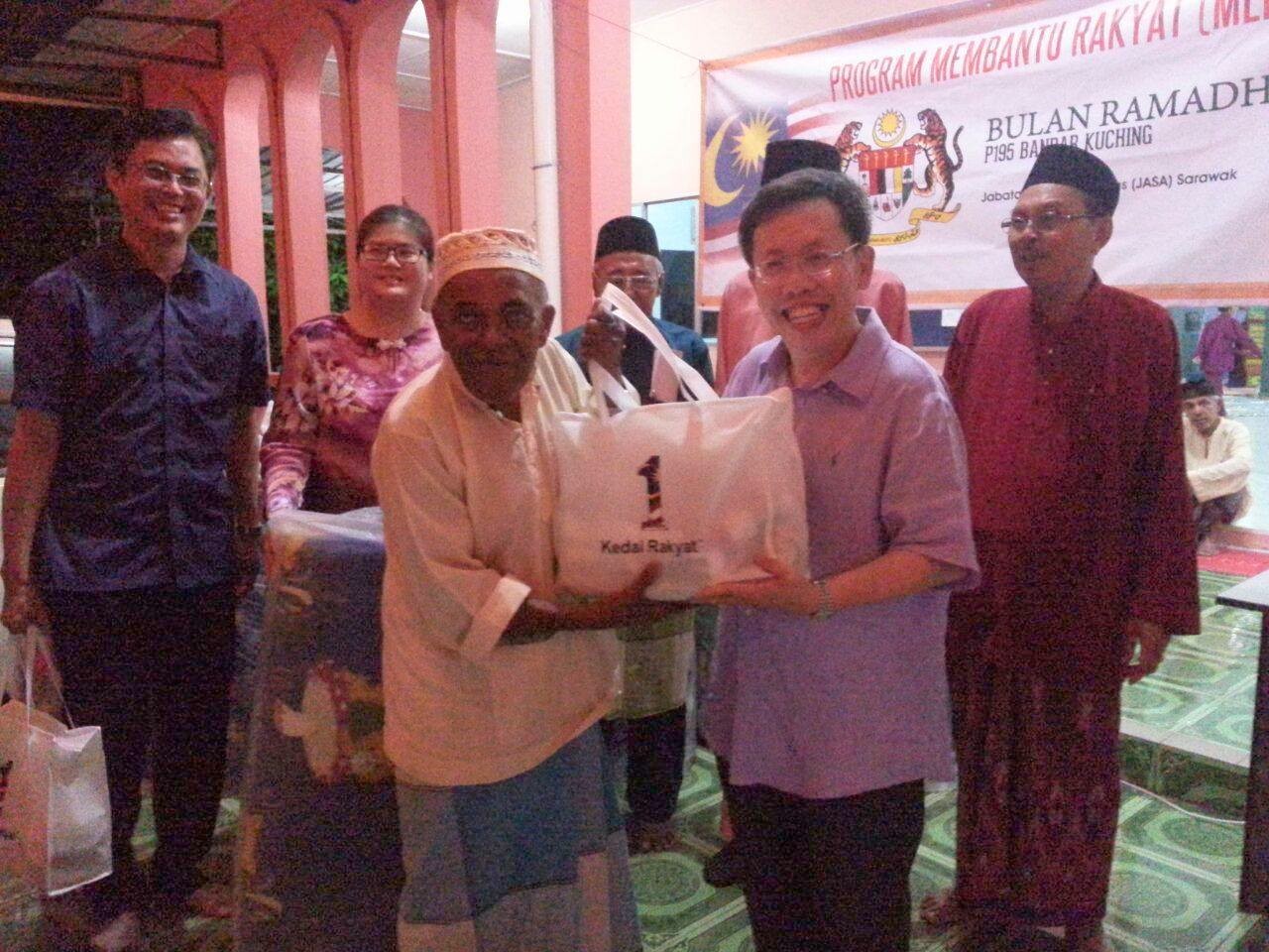 砂人联党秘书长拿督沈桂贤上议员于日前出席肯雅兰达鲁依巴达清真寺的马来开斋晚宴,并在活动上派发礼品予穆斯林同胞。