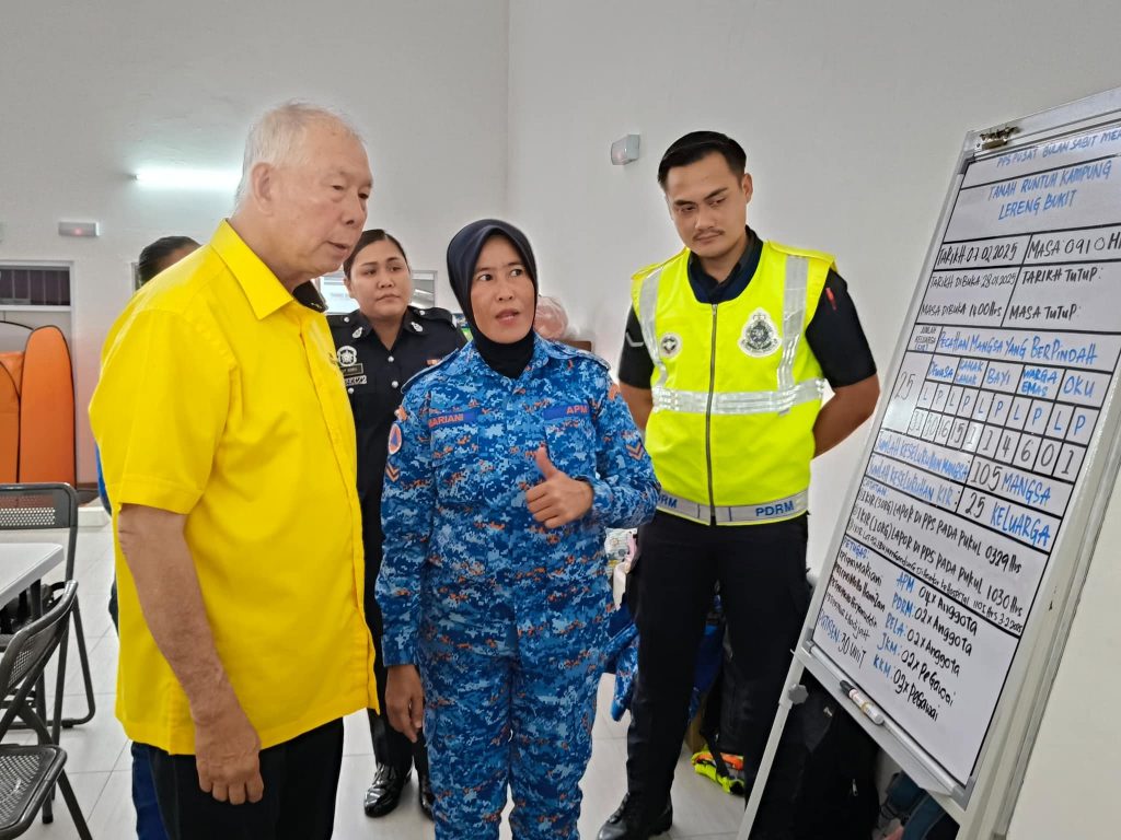 砂拉越旅游、创意产业及表演艺术副部长拿督陈超耀周五巡视红新月临时疏散中心(PPS)。