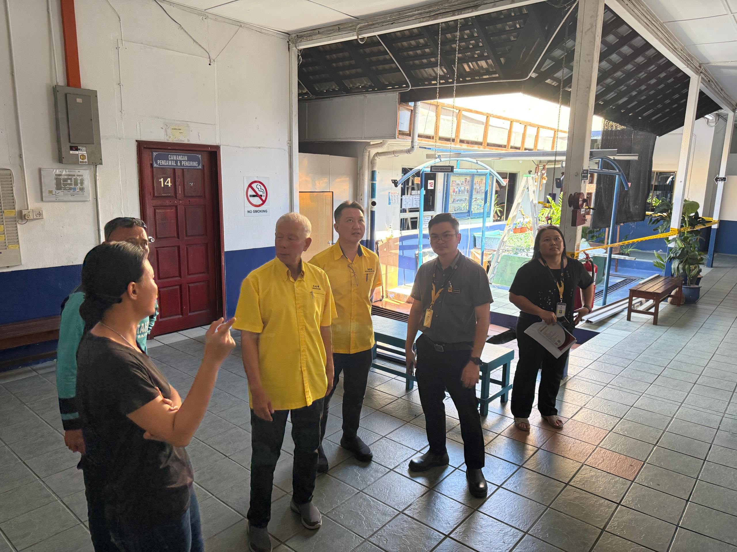 Ting, accompanied by his Private Secretary Ms. Chia Kah Furng, Miri City Councillor Cr. Kelvin Chia, Public Works Department (JKR) officers, and the Head of the Criminal Investigation Department, conducted a site visit yesterday. The delegation assessed the extent of the wiring issues and discussed necessary steps to mitigate risks.